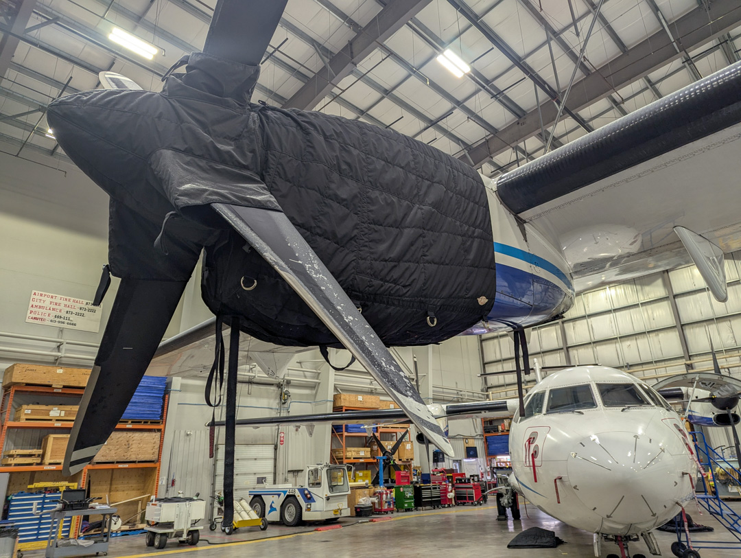 The Aerospatiale ATR-42/72 Insulated Engine Cover works well in cold climates to help with engine preheating. You can add an access flap for an additional fee. It will cinch around or behind the spinner, cover the entire engine cowl area including the engine air inlets, and fastens together with Velcro beneath the spinner down the front of the cowling.... read more