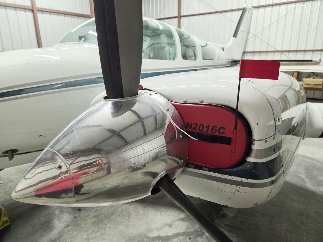 The Beech Baron 55, A55, B55 & C55 Propeller Cover is a one-piece design that form fits to the blades and spinner. The prop cover slips over the blades and spinner and is attached by a plastic all-weather zipper on the bottom of the blades. Propeller covers can be made for multiple numbers of blades, and for wooden, composite or metal props. The Propeller Cover is normally made from Acrylic Sunbrella or Solution-Dyed Polyester and is lined 100% with a soft and smooth microfiber. Insulated Propeller Covers works well in cold climates to help with engine preheating. These insulated versions are made with a thicker, quilted, water-repellent, and breathable material.... read more