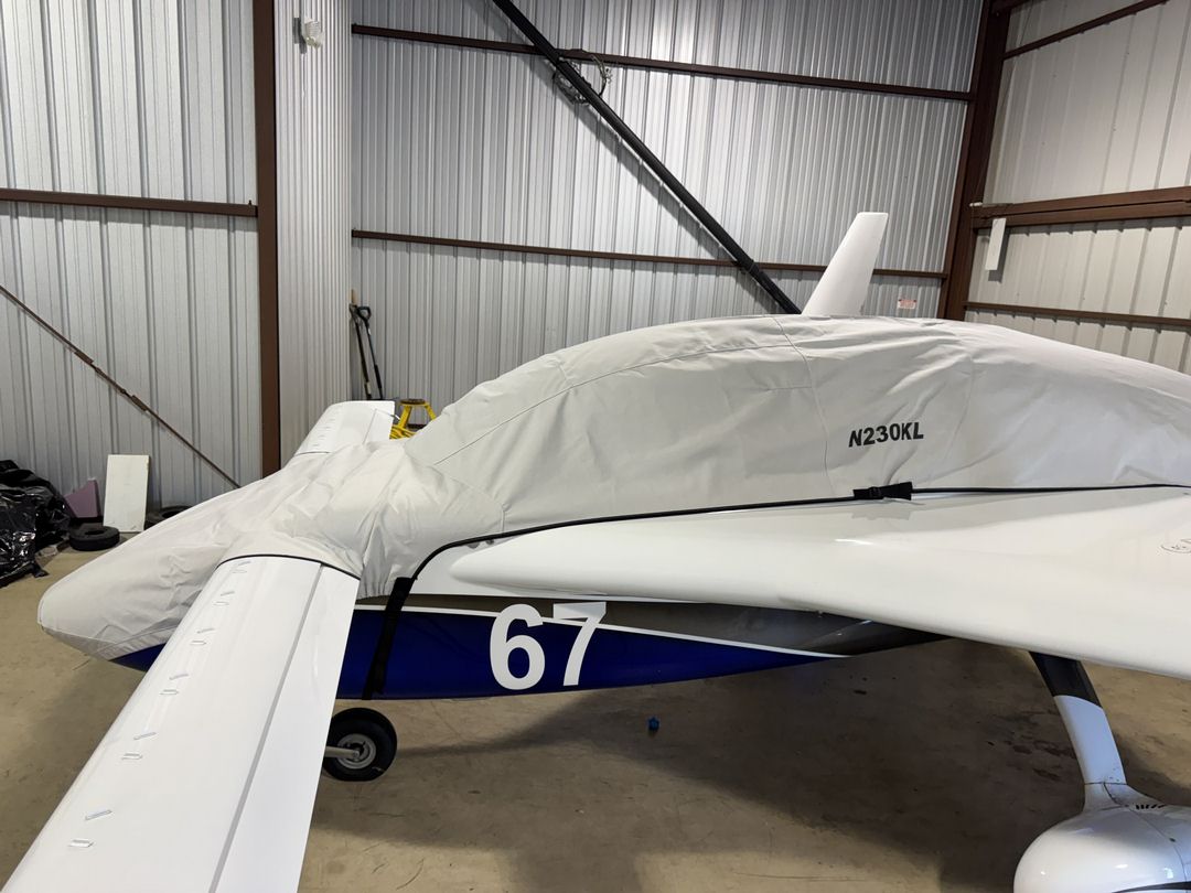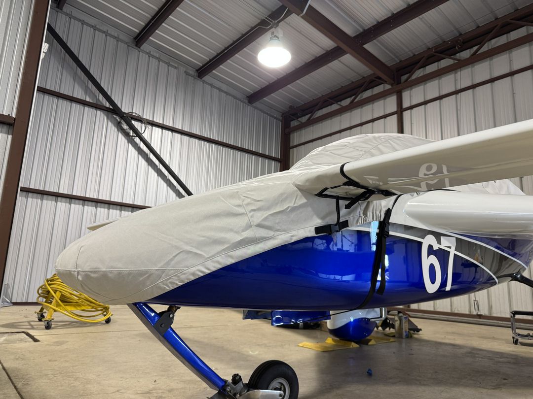 The Cozy All Models Wing Covers are a perfect solution to protect your paint from sun damage and prevent winter frost, snow, ice buildup, and corrosion. They are made from Solution-Dyed Polyester or Acrylic Sunbrella and form-fit to slip around each wing tip, cover the entire upper surface of the wing and wrap around the leading and trailing edges. The covers secure under the wing with adjustable straps from the trailing edge to the leading edge. The wing covers can also attach to each other with adjustable straps at the leading and trailing edges of the wing under the belly of the plane. In some instances, cut-outs are made in the trailing edge of the wing covers to accommodate static wicks. We have the ability to also accommodate wing tip modifications, such as STOL kits, droop tips, and vortex generators. Wing covers are labeled LEFT and RIGHT for your convenience. Wing Covers are available for winter use or long-term, all-year use. A Hail Protection version can be made which incorporates very dense closed cell foam into the entire upper surface of the wing covers to help prevent hail damage. Although these covers are bulky, they do help protect your wing and control surfaces against small to medium-size hail.... read more