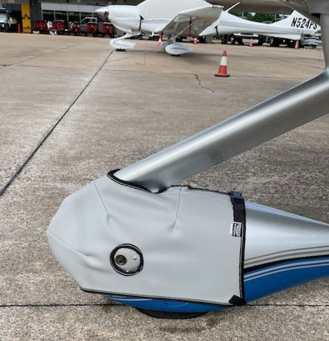 The Cirrus SR22 Propeller Cover is a one-piece design that form fits to the blades and spinner. The prop cover slips over the blades and spinner and is attached by a plastic all-weather zipper on the bottom of the blades. Propeller covers can be made for multiple numbers of blades, and for wooden, composite or metal props. The Propeller Cover is normally made from Acrylic Sunbrella or Solution-Dyed Polyester and is lined 100% with a soft and smooth microfiber. Insulated Propeller Covers works well in cold climates to help with engine preheating. These insulated versions are made with a thicker, quilted, water-repellent, and breathable material.... read more
