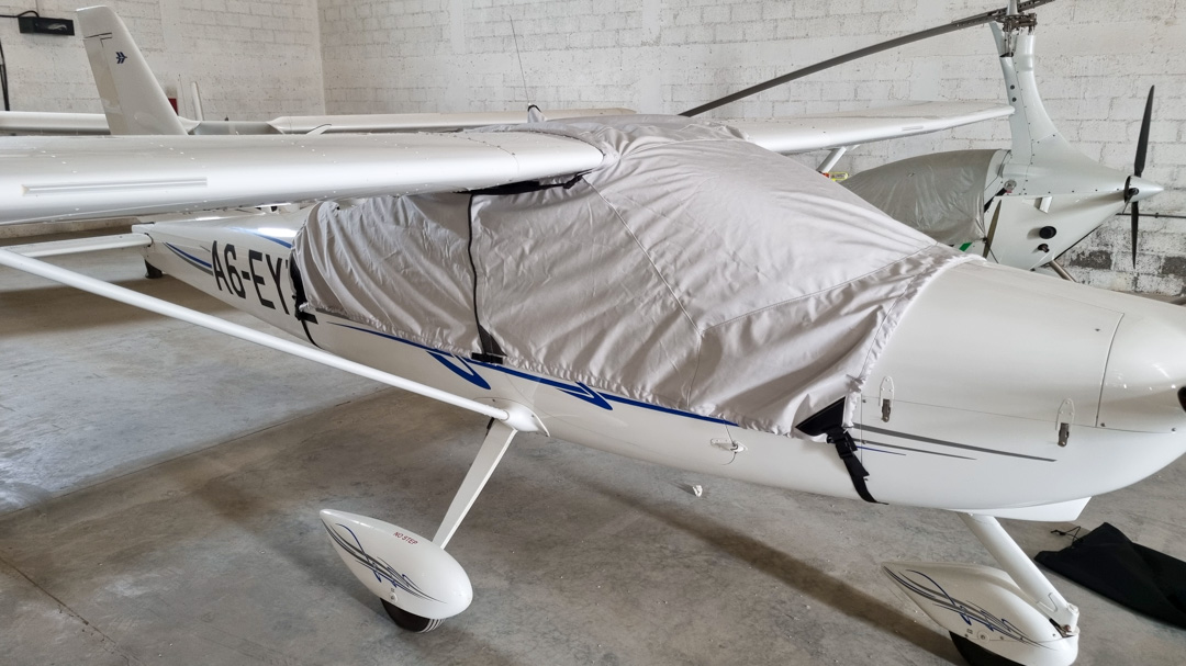 The Tecnam P2008 Wing Covers are a perfect solution to protect your paint from sun damage and prevent winter frost, snow, ice buildup, and corrosion. They are made from Solution-Dyed Polyester or Acrylic Sunbrella and form-fit to slip around each wing tip, cover the entire upper surface of the wing and wrap around the leading and trailing edges. The covers secure under the wing with adjustable straps from the trailing edge to the leading edge. The wing covers can also attach to each other with adjustable straps at the leading and trailing edges of the wing under the belly of the plane. In some instances, cut-outs are made in the trailing edge of the wing covers to accommodate static wicks. We have the ability to also accommodate wing tip modifications, such as STOL kits, droop tips, and vortex generators. Wing covers are labeled LEFT and RIGHT for your convenience. Wing Covers are available for winter use or long-term, all-year use. A Hail Protection version can be made which incorporates very dense closed cell foam into the entire upper surface of the wing covers to help prevent hail damage. Although these covers are bulky, they do help protect your wing and control surfaces against small to medium-size hail.... read more